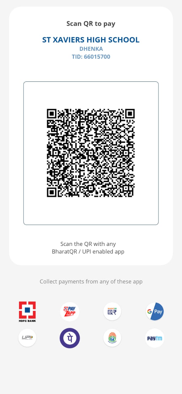Pay school dues and receivables only by digital mode ,You are here by instructed to pay your dues to the school by scanning attached QR Code.